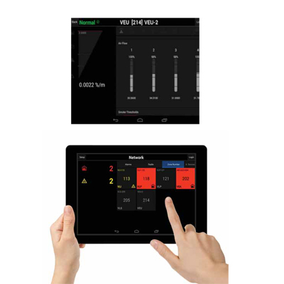全新VESDA-三 軟體,可支援遠端操控,透過手機或平板電腦下載APP:iVESDA (Android與iOS),可連線至VESDANet與現場偵測器進行設定及監控,並與現有VESDA極早期火災預警採測器兼容。